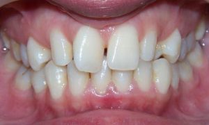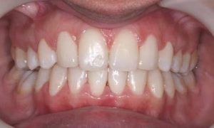 This patient decided on porcelain veneers to close the gap between his upper central incisors.